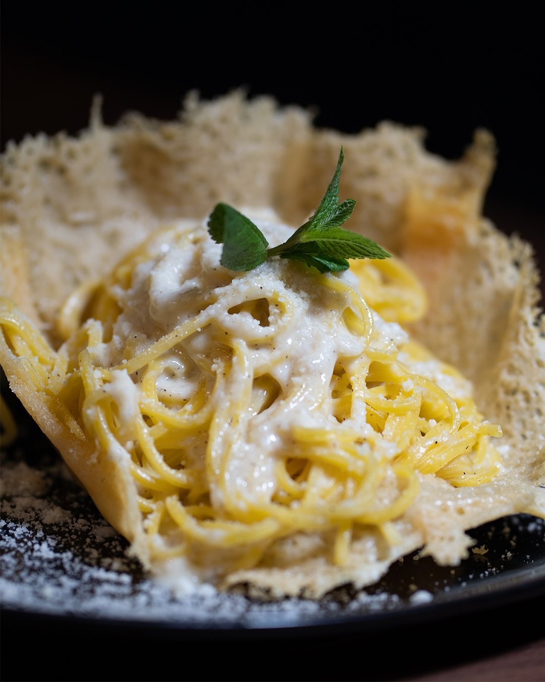 Cacio e pepe in crosta di parmigiano